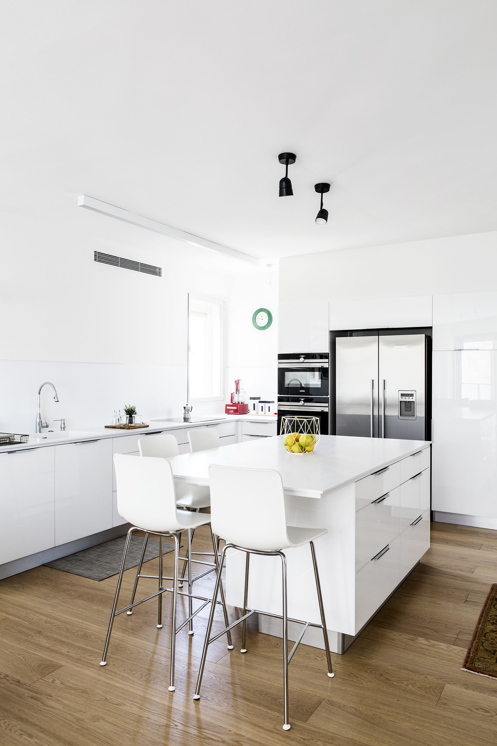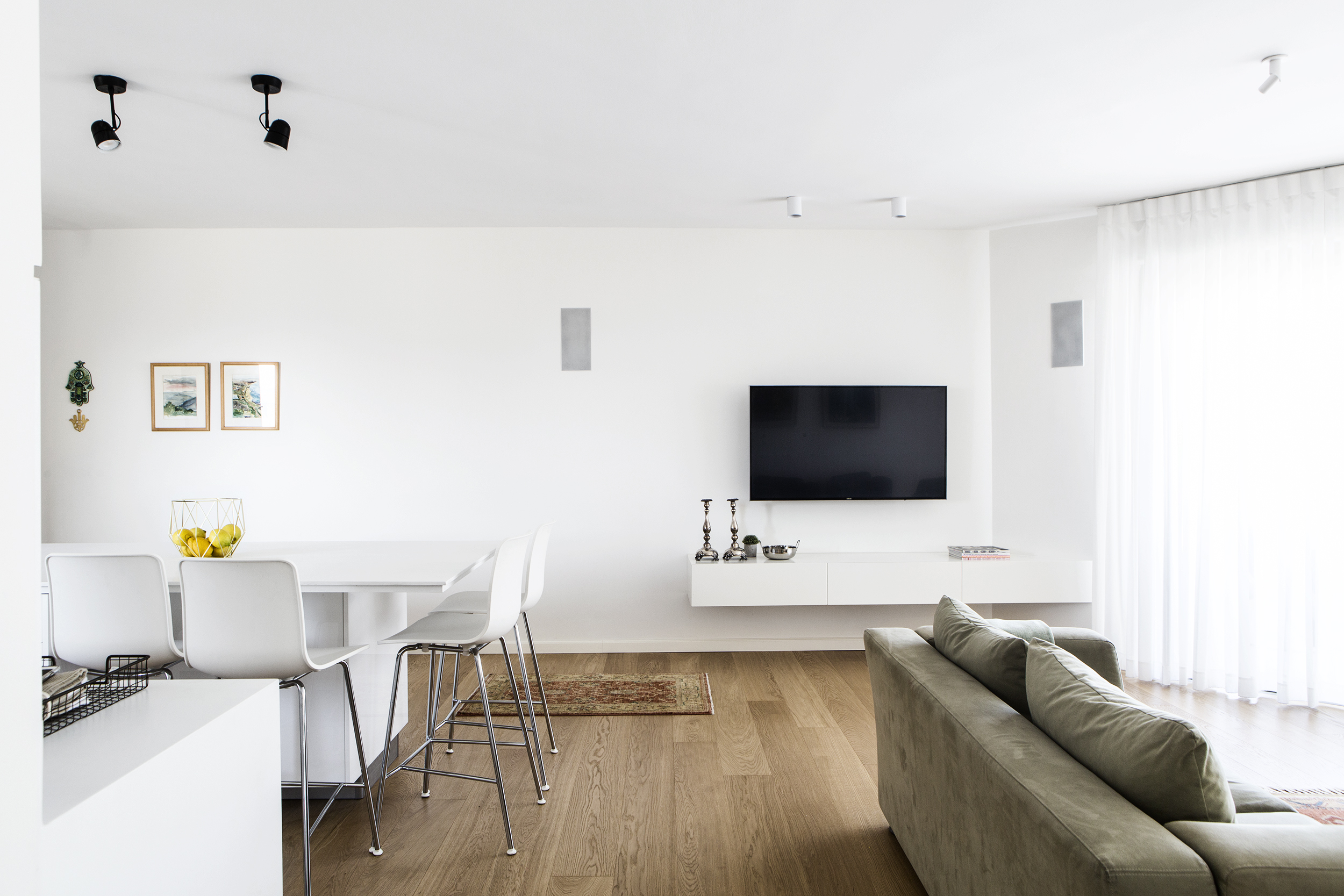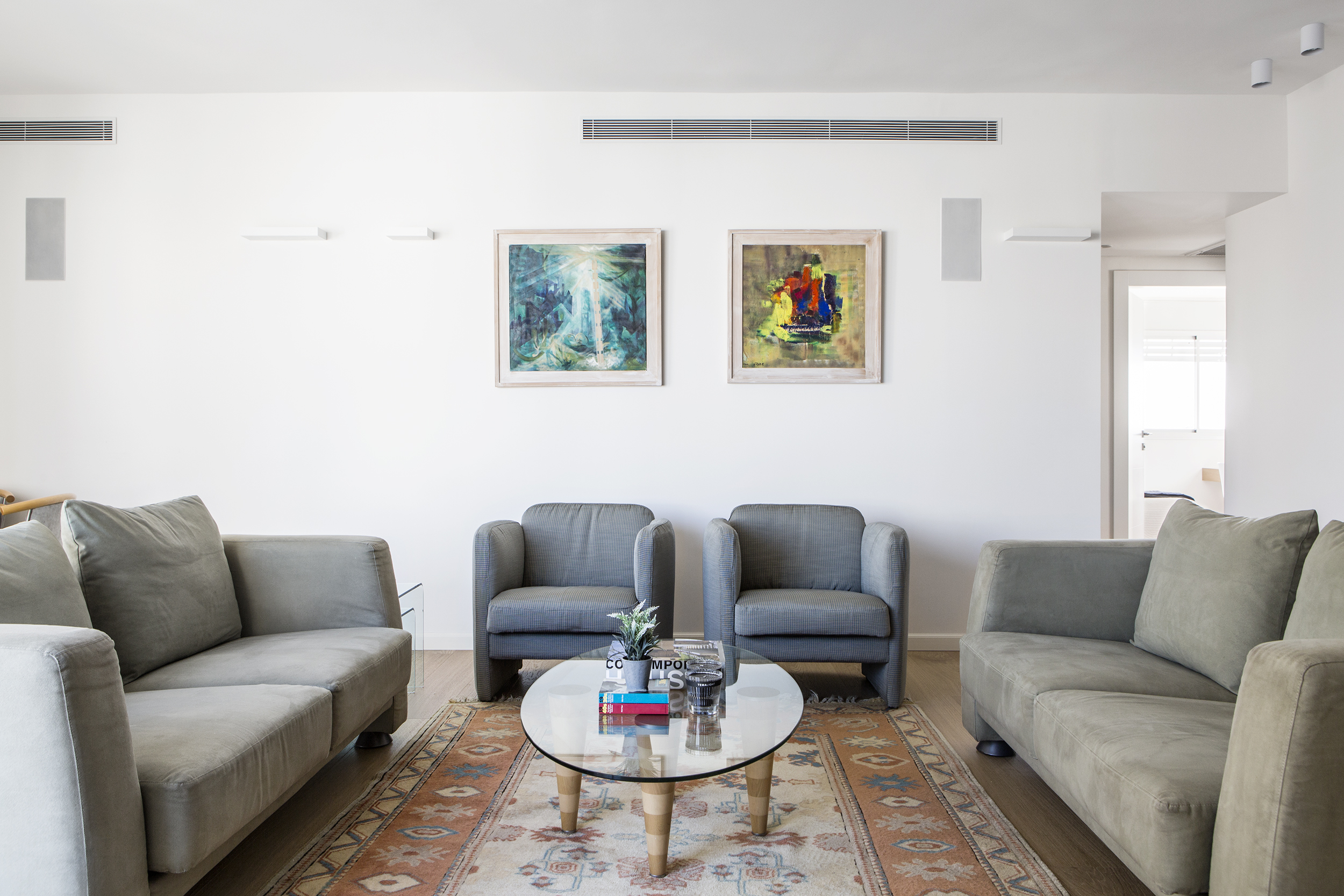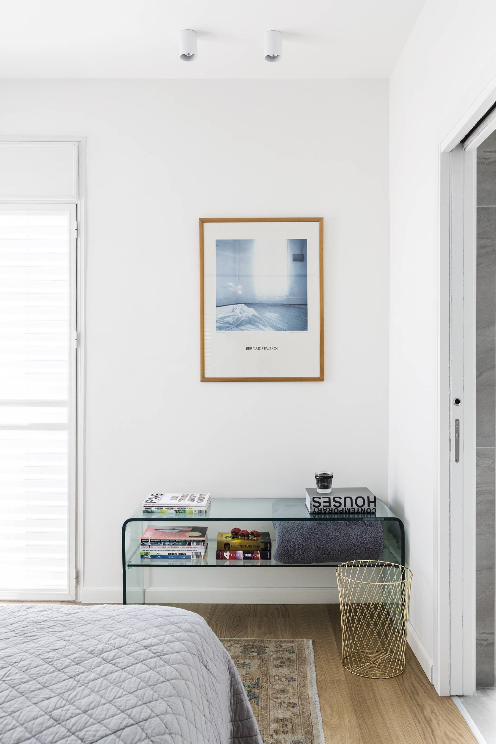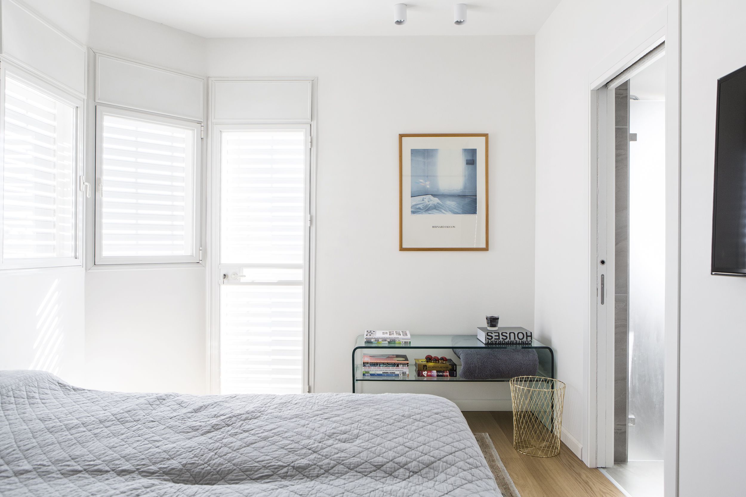 When the clients’ three children grew up and left home, they decided it was time to leave their Jerusalem home in favor of the center of the country, to make the most of life and still be close to the children and grandchildren. They bought a five-room apartment which they wanted to turn into four spacious rooms. The result is an apartment with inviting hosting spaces, a pleasant, well-equipped kitchen, a “hotel-grade” bedroom and, of course, a room for the grandchildren. The apartment was planned and designed in a clear, refined, fresh and warm style, with simple, precise lines and a monochrome color scale.