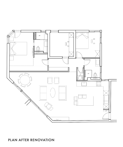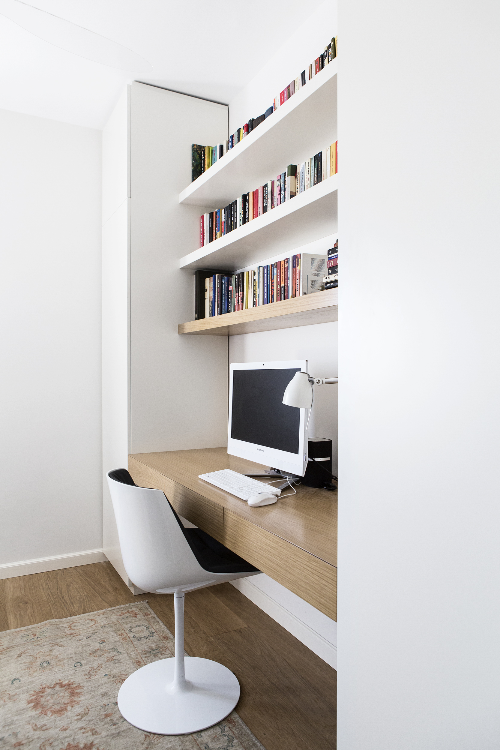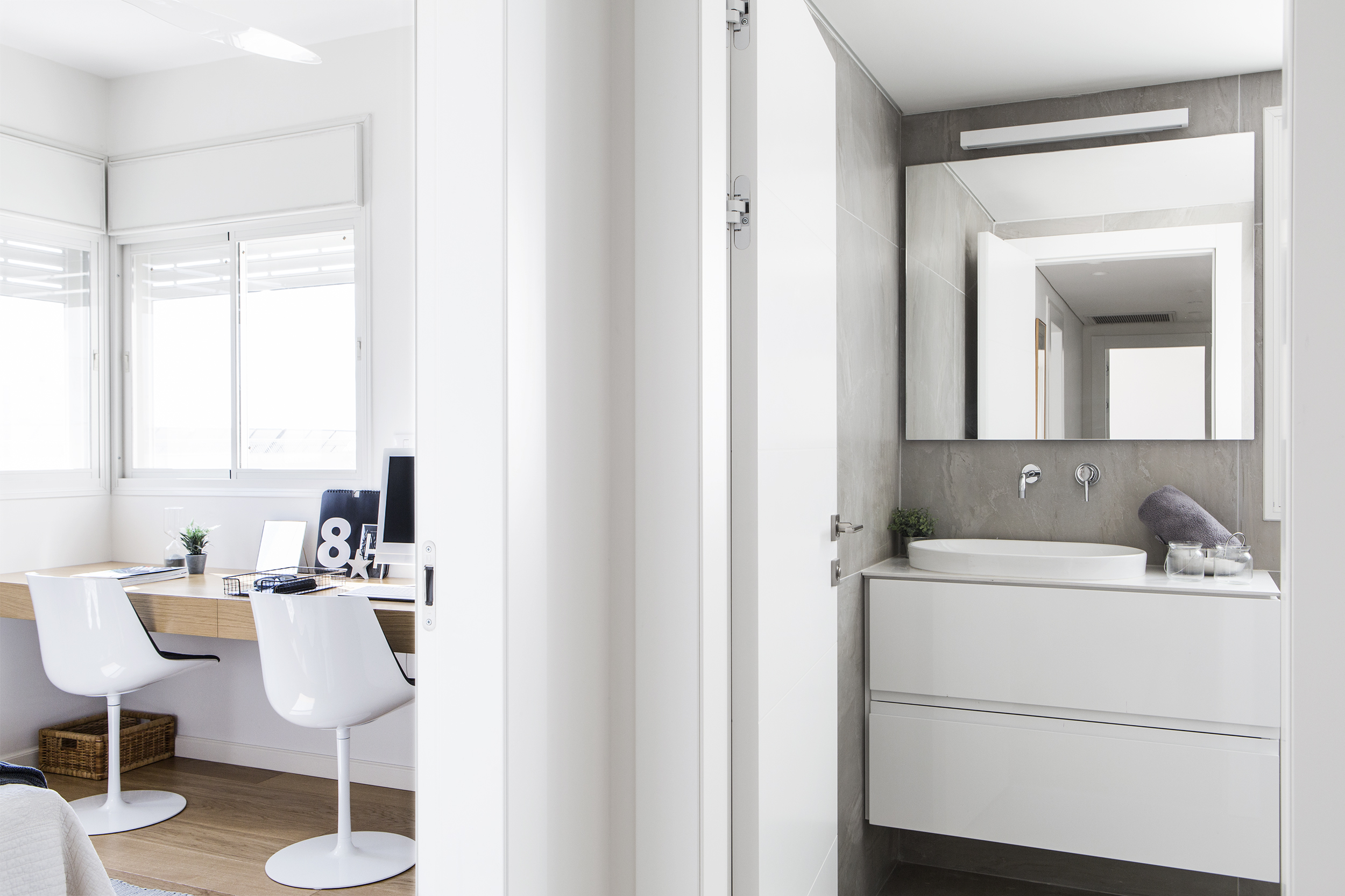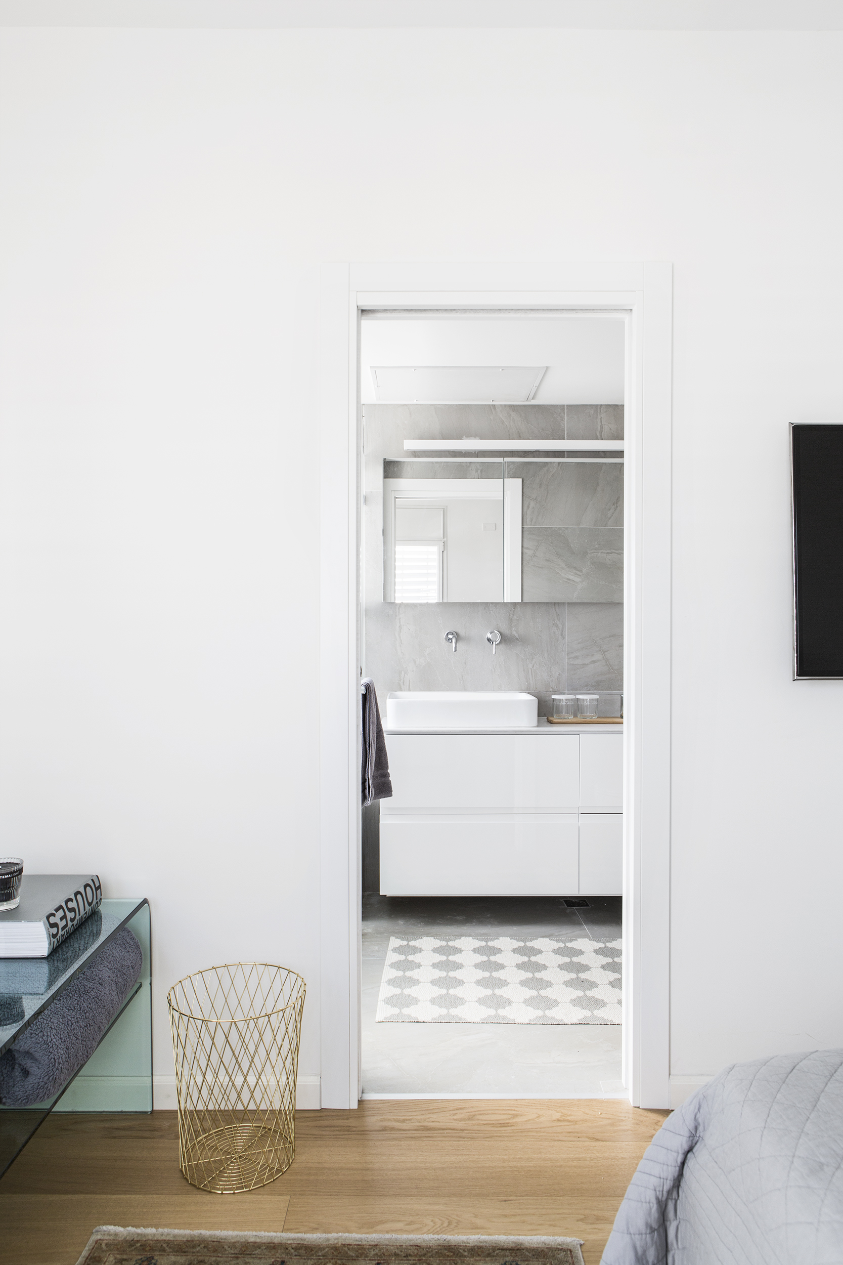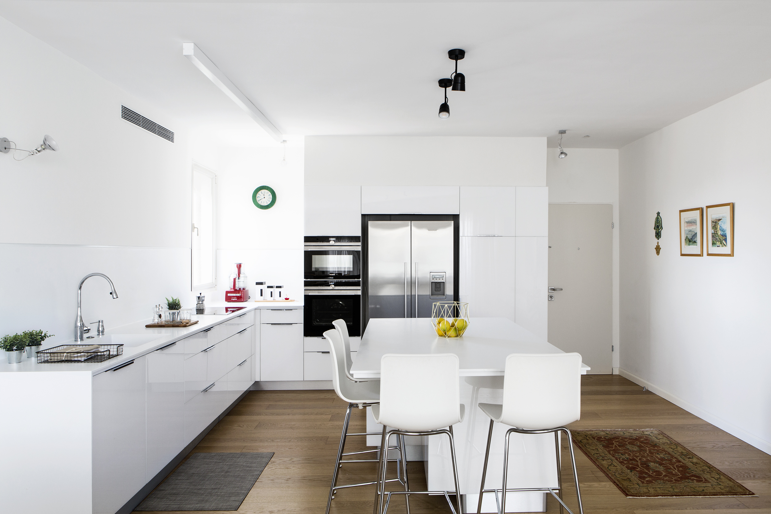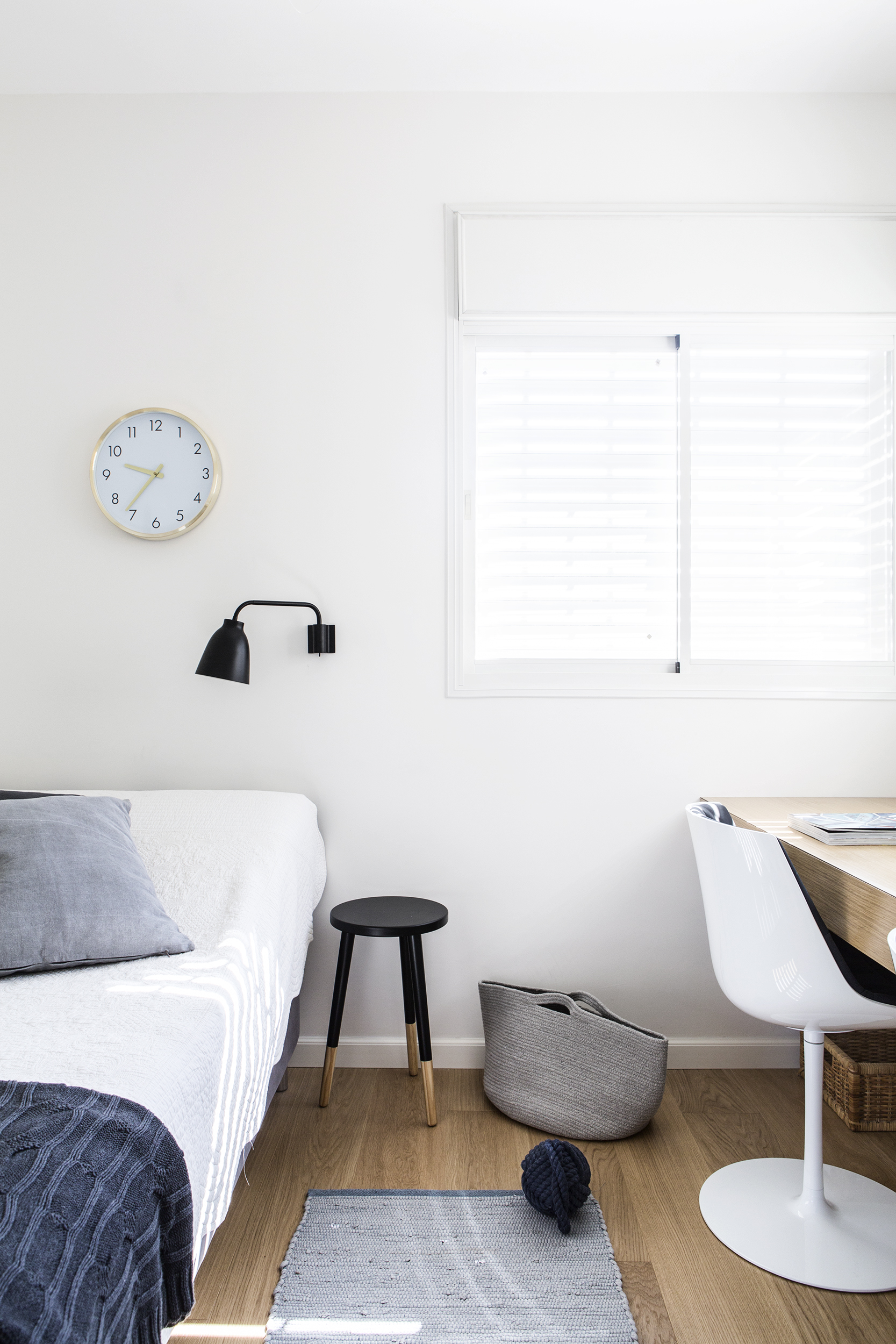 When the clients’ three children grew up and left home, they decided it was time to leave their Jerusalem home in favor of the center of the country, to make the most of life and still be close to the children and grandchildren. They bought a five-room apartment which they wanted to turn into four spacious rooms. The result is an apartment with inviting hosting spaces, a pleasant, well-equipped kitchen, a “hotel-grade” bedroom and, of course, a room for the grandchildren. The apartment was planned and designed in a clear, refined, fresh and warm style, with simple, precise lines and a monochrome color scale.