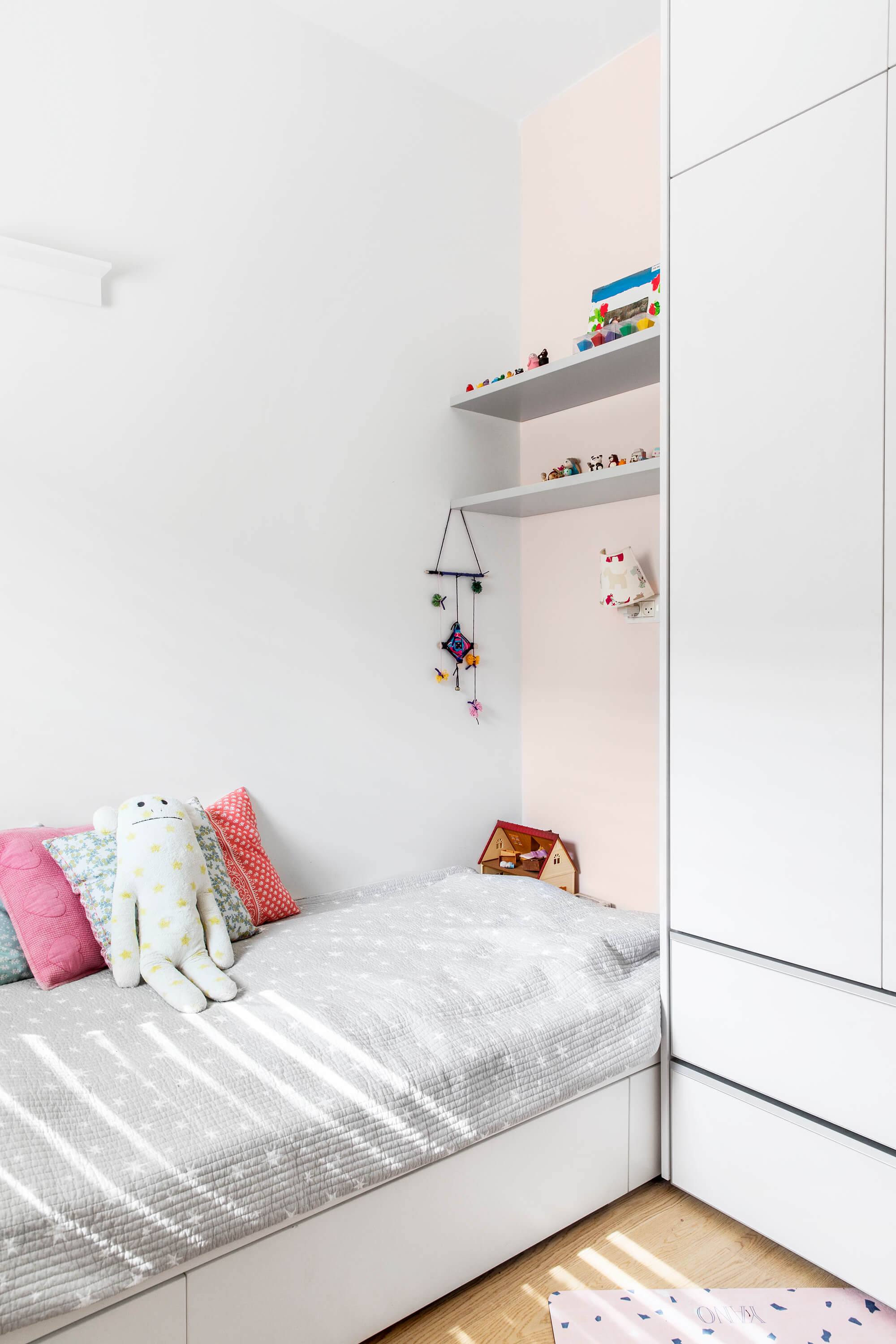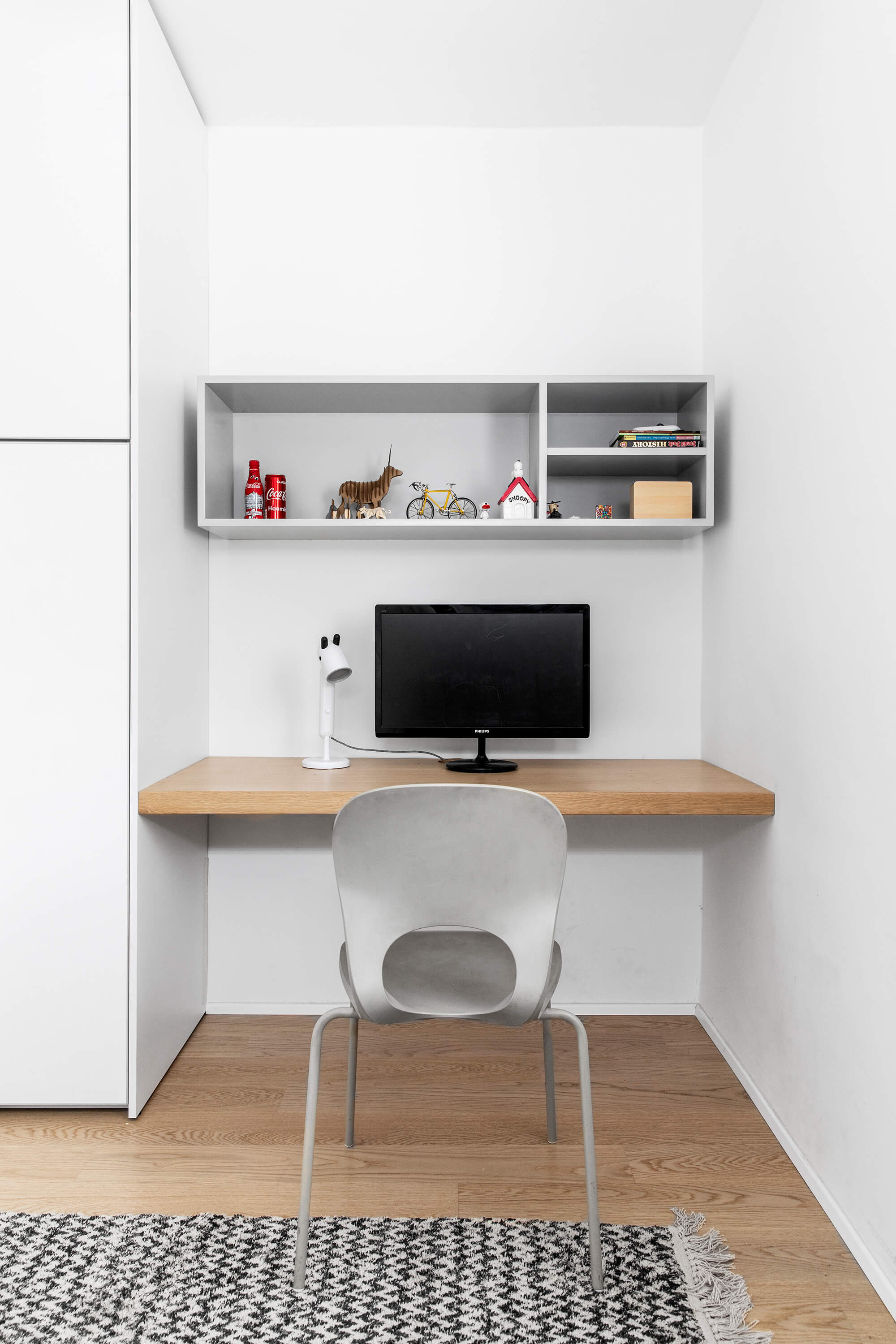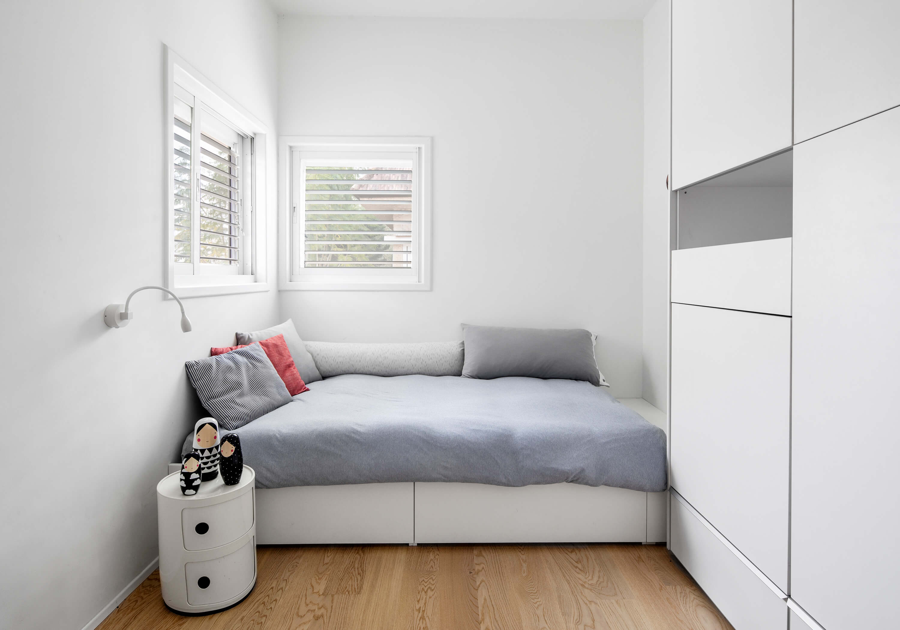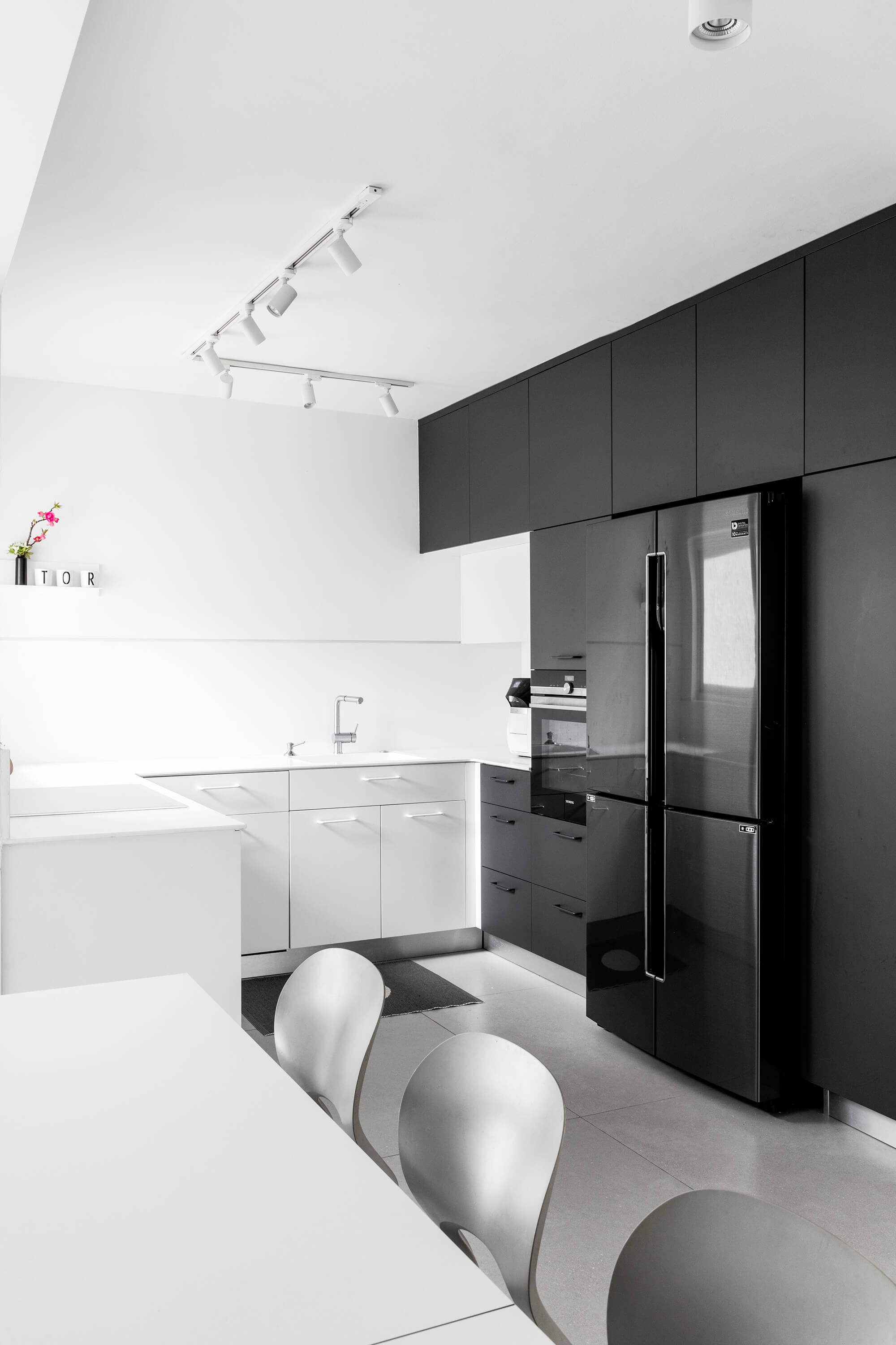 דירת גג של ארבעה חדרים, שנרכשה לפני עשר שנים והתאימה בשעתו לדרישות המשפחה. מאז התבגרו הילדים, וגם העדפותיהם של ההורים השתנו. לאור זאת עוצבה הדירה מחדש בקו אירופי נקי ואל-זמני, המשלב נטייה מינימליסטית וחמימות ביתית. זכויות בנייה במפלס הגג נוצלו לשם הקמה של יחידת הורים, שלצדה נשמר אזור אירוח פתוח. לצורך זה נשמרה גם ההפרדה בין יחידת ההורים לבין היציאה אל הגג. מיקומו של גרם המדרגות בחלל המקורי יצר חסימה בין המטבח לסלון, והותיר מרחב סגור ואפלולי. במסגרת התכנון המחודש הועבר גרם המדרגות ממקומו ועוצב מחדש בקווים מינימליסטיים, בין היתר כדי לצמצם את נוכחותו הוויזואלית בחלל הבית ולחבר בין הסלון למטבח. השינוי דרש תכנון מחודש של התקרה ושילוב אלמנטים קונסטרוקטיביים בדמות קורות פלדה. אלה נצבעו באפור בהיר כדי לאזן בין המראה התעשייתי לבין תחושה של קלילות – וכל זאת, בלי להסתיר את יופיו של החומר.